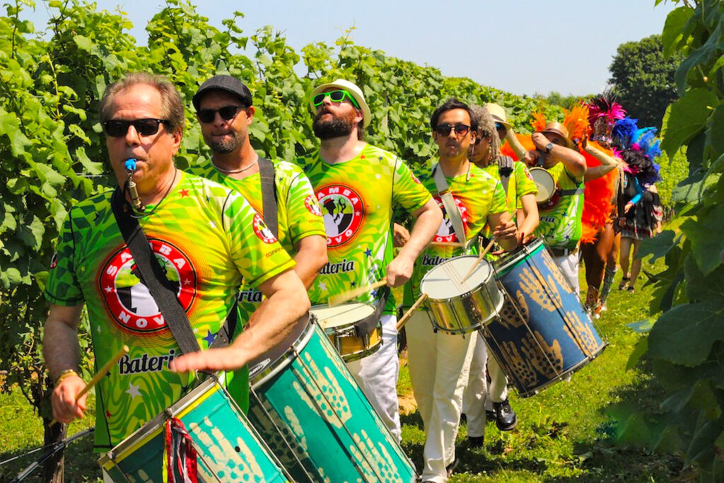 The event features Samba Nova Brazilian dancers and performers, who emerge from the vineyard for song and dance shows throughout the day. The drums can be heard in the distance as they work their way through the crowd of cheering guests creating one big dance party. It’s a can’t miss event full of music, festive food, and our most celebratory Sparkling Pointe wines!