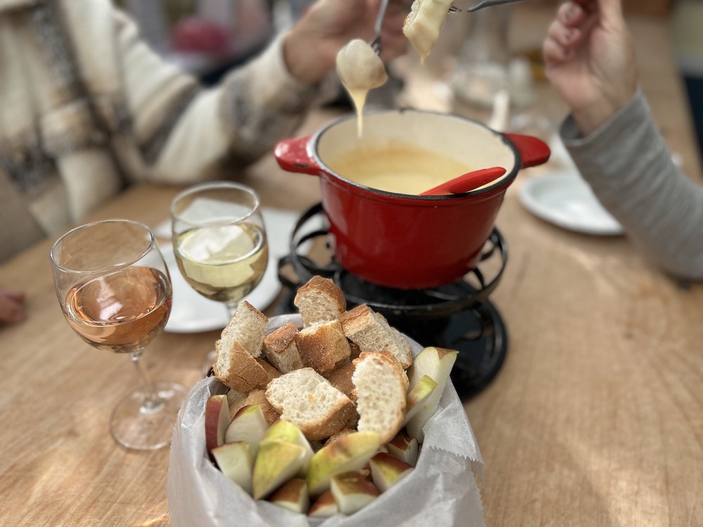 Includes Cheese Fondue with all the Fixin’s and a Glass of Wine!