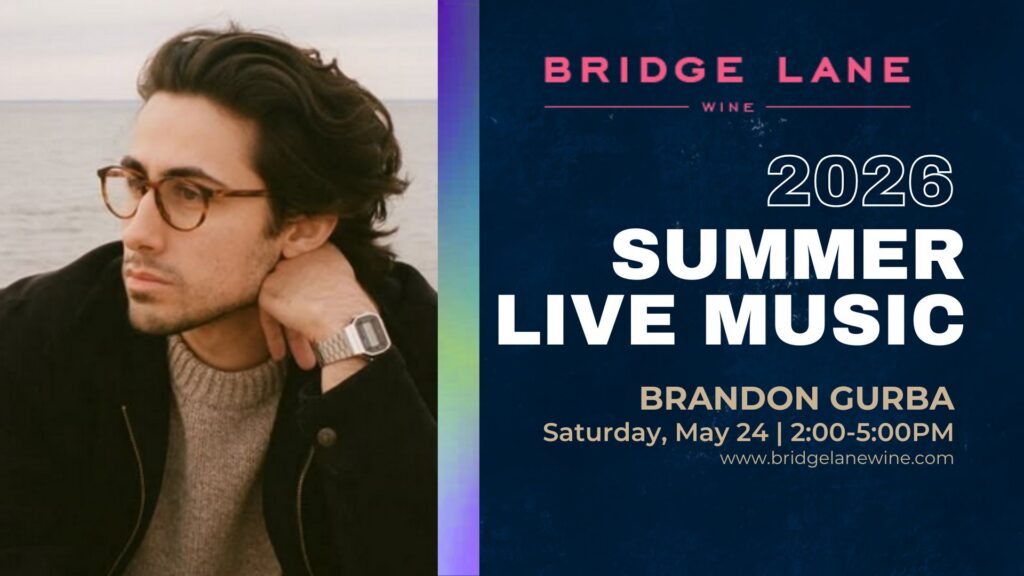Live music kicks off at Bridge Lane Wine Memorial Day Weekend with Brandon Gurba performing from 2–5 PM on Sunday, May 24. Join us for an afternoon of great wine and live tunes as we welcome the season back to the tasting room. Weather permitting.