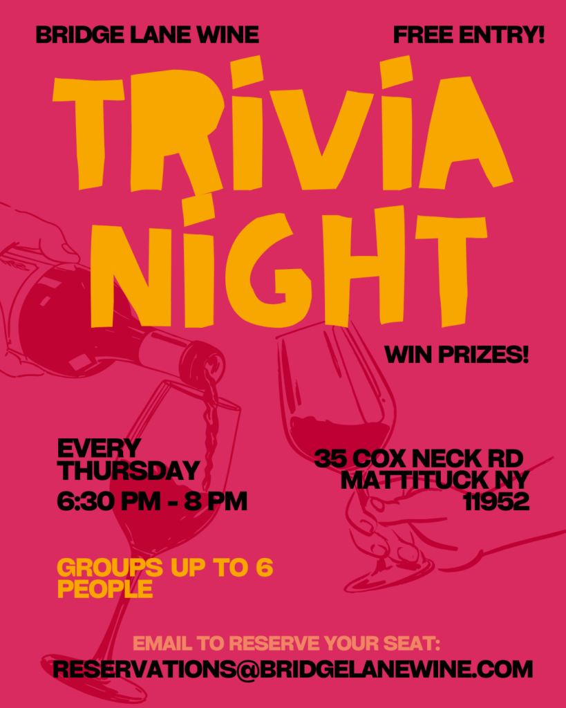 Email reservations@bridgelanewine.com to reserve your team’s spot!
